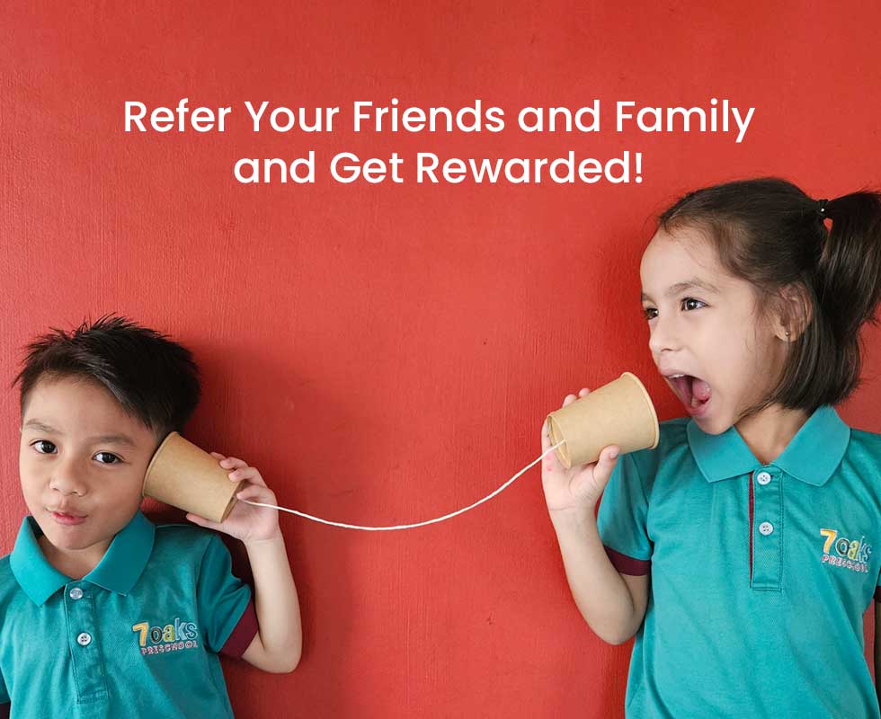 1) The Referrer (parent of a child currently enrolled in 7oaks Preschool, current employees of Oaks Plus Limited or PPIS) who refers a new parent to any 7oaks Preschool center must complete and submit the Referral Form provided below.